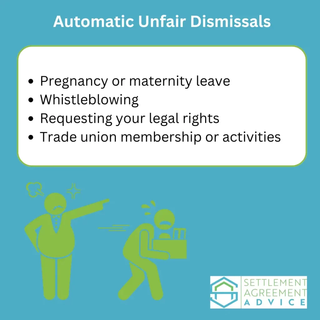 Some dismissals are automatically classed as unfair, meaning employers cannot justify them. These include being fired for: